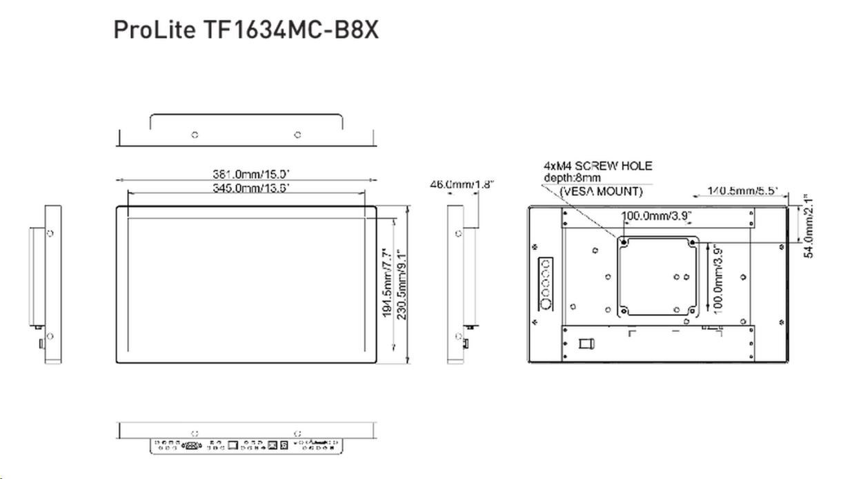 iiyama ProLite TF1634MC-B8X, 39.6 cm (15,6''), Projected Capacitive, 10 TP, Full HD, black