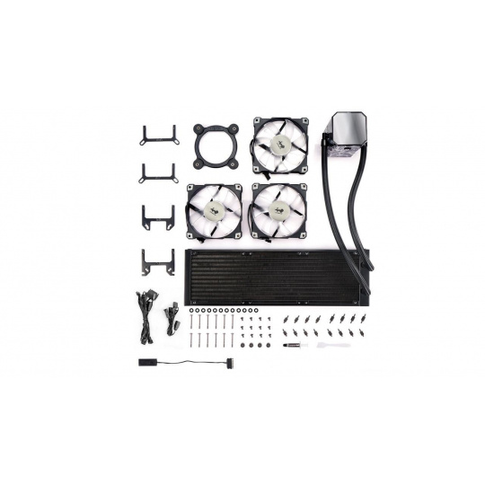| Package Contents | InWin SR series 360mm CPU Liquid Cooler *1 InWin AJF120 Addressable Fan * 3 ARGB One-Click Controller Fan and Radiator Mounting Screws Pack Mounting Kit for CPU Sockets Cable Pack |