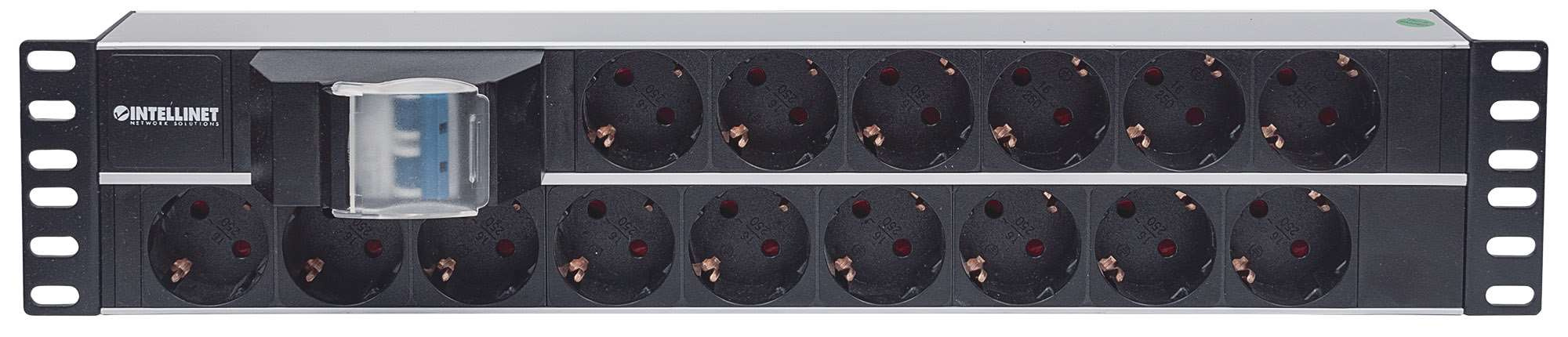 Intellinet 19" 2U Rackmount 15-Way Power Strip - German Type, rozvodný panel, 15x DE zásuvka, 3m kabel
