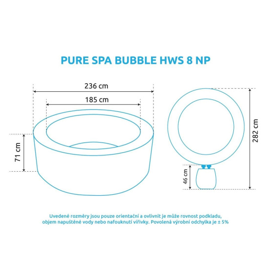 - Vnější průměr: 236 cm (po naplnění vodou, tolerance ± 5%)