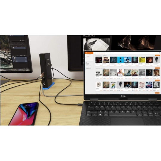 Univerzální dokovací stanice, kterou lze použít prakticky s jakýmkoliv notebookem, neboť je možné ji připojit do libovolného USB portu (USB 3.0, USB-D, Thunderbolt 3, nebo dokonce i do staršího USB 2.0).