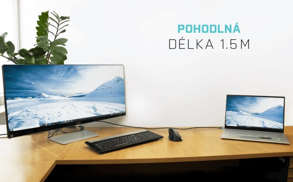 Kabelový adaptér je vhodný pro použití se všemi notebooky, které jsou vybaveny konektorem USB-C s podporou přenosu videa (DisplayPort alt Mode), nebo konektorem Thunderbolt 3 (včetně Apple MacBook 2015 nebo Apple MacBook Pro 2016 a novější). Konektory USB-C a Thunderbolt 3 mají řadu výhod.