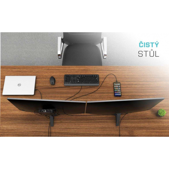 Základem moderní pracovní plochy je čistý stůl. Pokud váš monitor nabízí VESA standard pro montáž, můžete si tuto dokovací stanici snadno nainstalovat za něj, za pomoci volitelného rámečku (objednací kód: VESADOCK1).