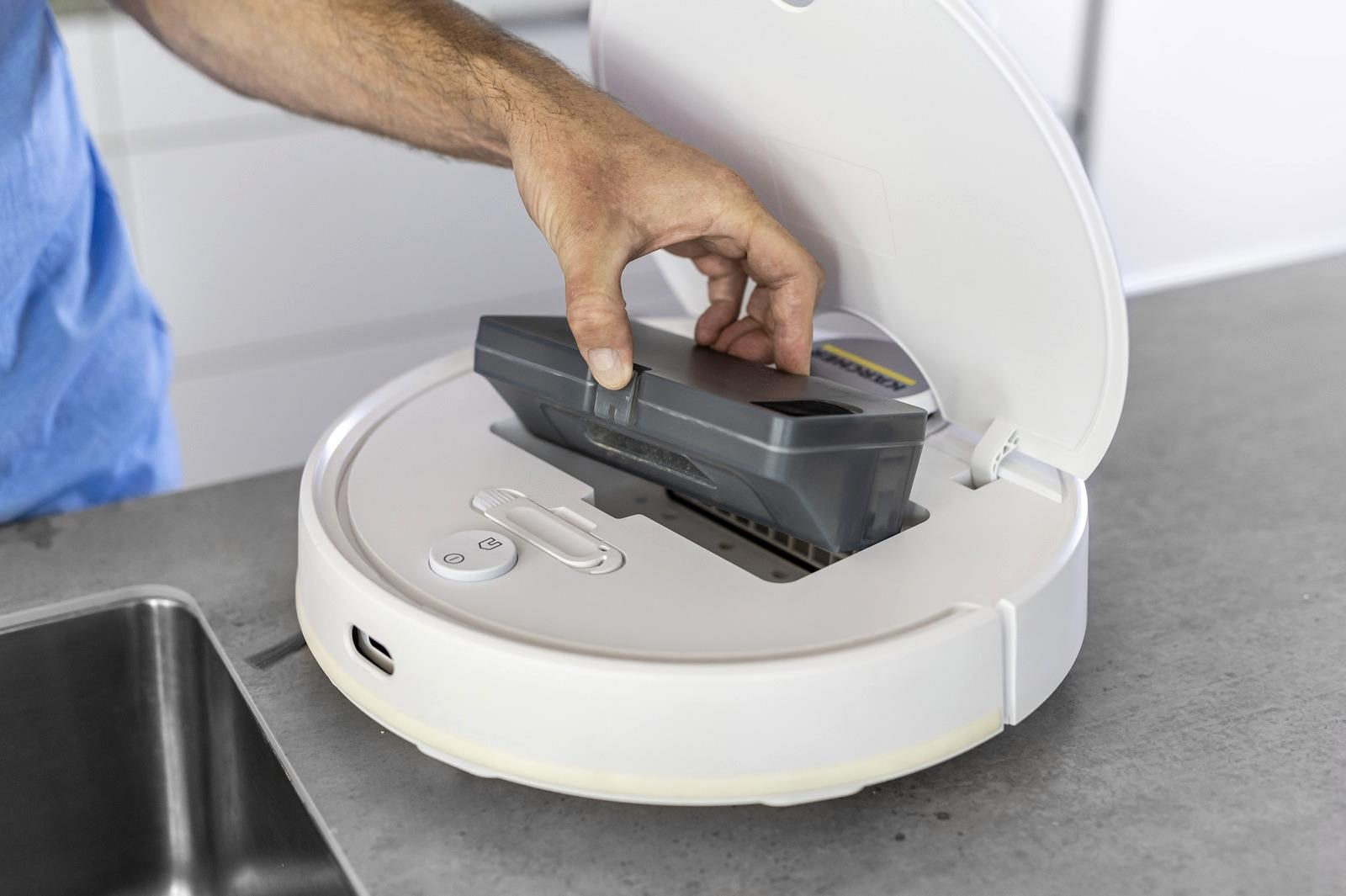 Pro ještě lepší výsledky čištění může RCV 3 také mopovat. V případě potřeby použijte k tomu určený hadřík z mikrovlákna, naplňte nádržku na čistou vodu a pusťte vysavač do akce. Robotický vysavač RCV 3 lze použít buď pouze pro suché čištění, pouze pro mokré mopování, nebo s oběma možnostmi dohromady v kombinovaném režimu čištění.