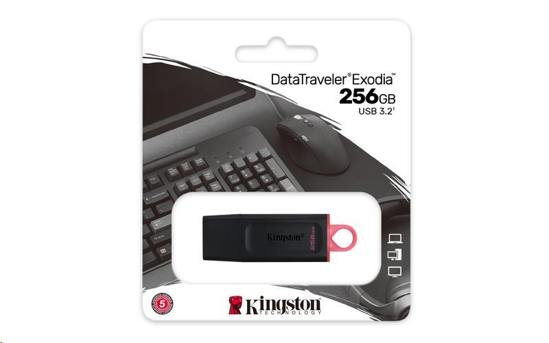 Disk DataTraveler® Exodia značky Kingston je vybavena výkonným rozhraním USB 3.2 1. generace, které zajišťuje snadný přístup k notebookům, stolním počítačům, monitorům a dalším digitálním zařízením. Disk DT Exodia umožňuje rychlé přenosy a praktické ukládání dokumentů, hudby, videí a dalšího. Disk má praktickou konstrukci a módní barevné provedení. Díky tomu je ideální pro každodenní využití v práci, domácnosti, ve škole a vlastně kdekoli, kam potřebujete svá data odnést. Disk DT Exodia je k dispozici s kapacitou až 256GB* a získáte k němu pětiletou záruku, bezplatnou technickou podporu a pověstnou spolehlivost značky Kingston®.