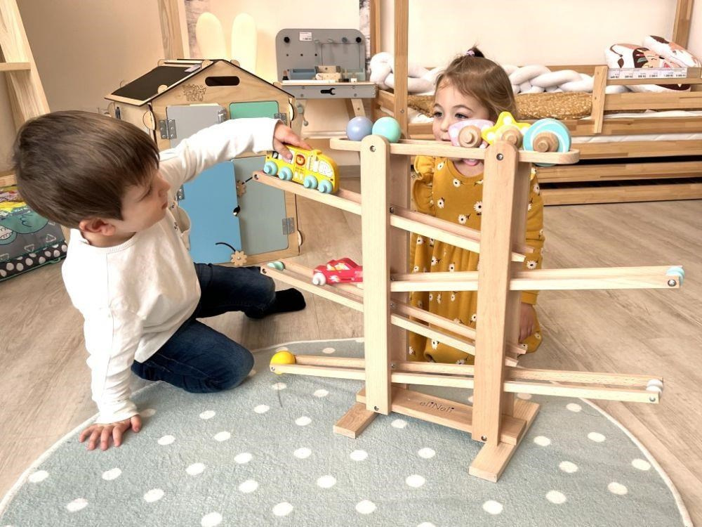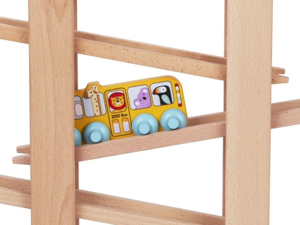 Dřevěná kuličková dráha XL s originálními prvky v podobě parádního závodního autíčka a autobusu se zvířátky ze ZOO ZDARMA nadchne každé dítko. Kuličková dráha z tvrdého přírodního dřeva se 7 zábavnými prvky v krásných barvách zajistí zábavu nejen vaší holčičce nebo chlapci, ale i celé rodině. Stačí správně umístit kuličku, květinu, závodničku nebo bus na začátek dráhy a pak jen sledovat, jakou rychlostí zdolá všechna patra..