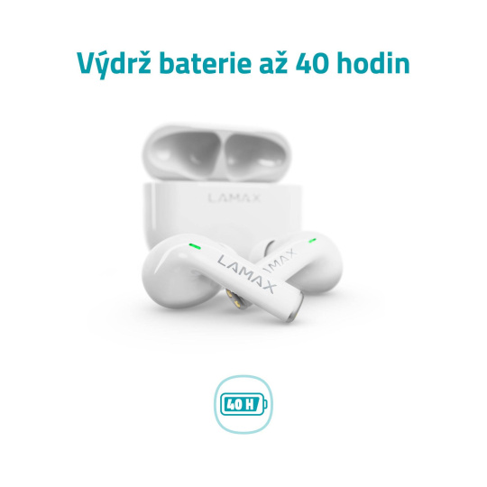 Žádné kabely? Super. Hledat furt nabíječku? To nechceš, a my to víme. Proto LAMAX Clips1 vydrží až 40 hodin. 8 hodin zmáknou po vyndání z pouzdra a to je nabije až čtyřikrát – kdekoliv a bez zásuvky. Celý pracovní týden nebo několikadenní výlet tak nemusíš šťávu vůbec řešit.