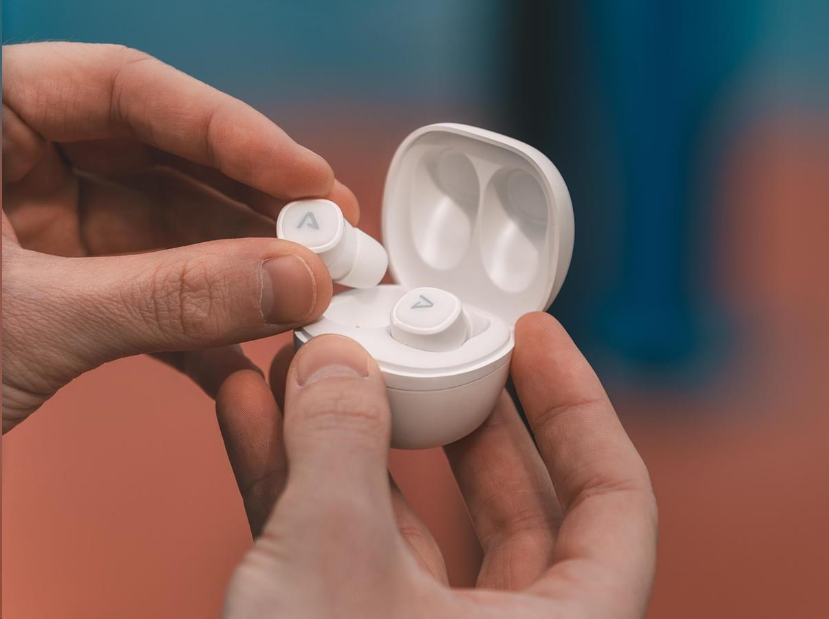 Pouzdro s kapacitou 550 mAh nabije špunty na max hned 5×. Zásuvku tak moc často hledat nemusíš. Samotná krabička se dobíjí taky vzduchem – stačí ji položit na bezdrátovou nabíjecí podložku.