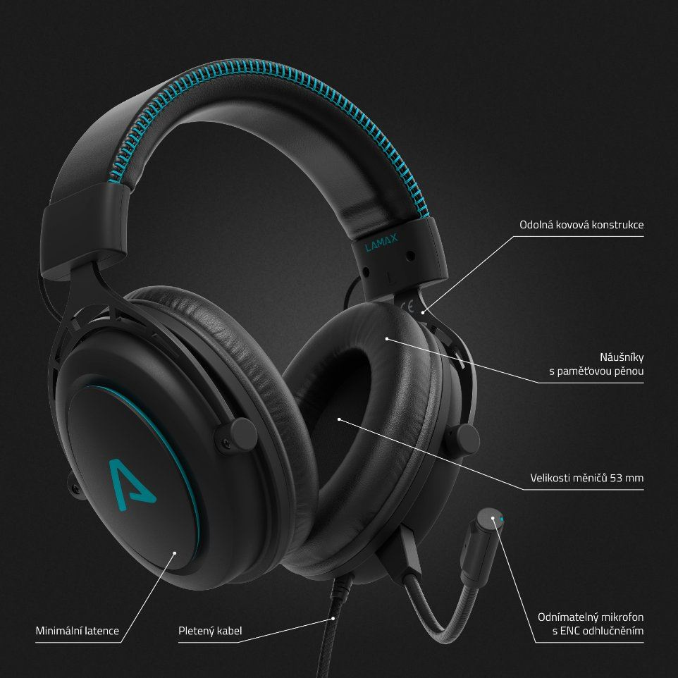 Ergonomická konstrukce a příjemné polstrování ti zajistí ultimátní pohodlí při plnění sebedelších questů. Náušníky jsme navíc vybavili paměťovou pěnou, která se dokonale přizpůsobí, takže po pár minutách zapomeneš, že máš vůbec něco na hlavě. Mysleli jsme i na design – kvalitní kovová konstrukce a ikonické LAMAX barvy mezi gamery jen tak nezapadnou.