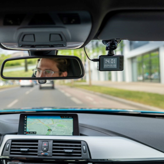 V jednoduchosti je krása, proto design i ovládání autokamery jsou přesně takové. České menu je navíc dokonale přehledné a zobrazí se ti na 2” displeji, který má i vychytaný spořič. Kameru propojíš prostřednictvím moderního USB-C konektoru a v její výbavě nechybí ani praktický přísavný držák, aby držela, kde má.