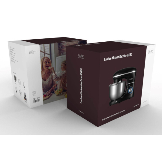 Kuchyňský robot Lauben Kitchen Machine 550BC klame tělem. Není žádný obr, zato jeho výkonný motor o síle 1400 W si poradí i s nejtužšími těsty. Stejně snadno tak připravíte piškotové těsto nebo chlebové. Zátěž pomáhají přístroji zvládat celokovové převody a použitý materiál zaručuje dlouhou životnost. Jakmile se pustíte do vaření, není třeba troškařit, mísa z prémiové nerezové oceli pojme až 5,5 l. Bez problémů tak připravíte i hostinu pro rodinu nebo sešlost s přáteli.