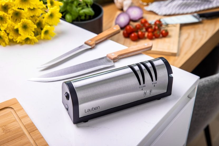 Díky Lauben Knife Sharpener 4700SB nabrousíte většinu nožů a sekáčků v pohodlí domova. Přidali jsme i speciální slot na broušení nůžek, i s těmi se tedy bruska Lauben poradí. Bruska umožňuje dva stupně broušení – hrubé a hladké začištění. Díky vodicím drážkám pro udržení správného sklonu a optimálnímu brusnému úhlu 15° zvládnete dokonale nabrousit každé ostří jako profesionál. Stačí brusku zapojit, spustit a vložit ostří, které chcete nabrousit.