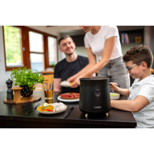 Proměnit vaření v zábavu, která navíc zabere minimum času, je nyní díky Lauben Multifunction Rice Cooker 1500BW jednodušší než kdy dřív. Víceúčelový rýžovar s keramickým nepřilnavým povrchem vnitřního hrnce o objemu 1,5 l se stane dokonalým pomocníkem na cestě ke zdravému životnímu stylu. Jeho 9 přednastavených programů si poradí s přípravou různých pokrmů, které i začátečník uvaří jako šéfkuchař. Za pomoci nerezového pařáčku pro dušení v páře můžete vařit ještě zdravěji, a to stiskem jediného tlačítka. Když vám však program nevyhovuje, pohodlně si vše nastavíte i manuálně. Manipulaci a ovládání usnadňuje dotykový displej a technologie Cool Touch, která je zároveň bezpečnostním prvkem zabraňujícím popálení. Uživatelsky přívětivá údržba, kdy stačí vnitřní hrnec vložit do myčky, také uspoří spoustu času. Prémiový design s dřevěným dekorem ozdobí každý interiér.