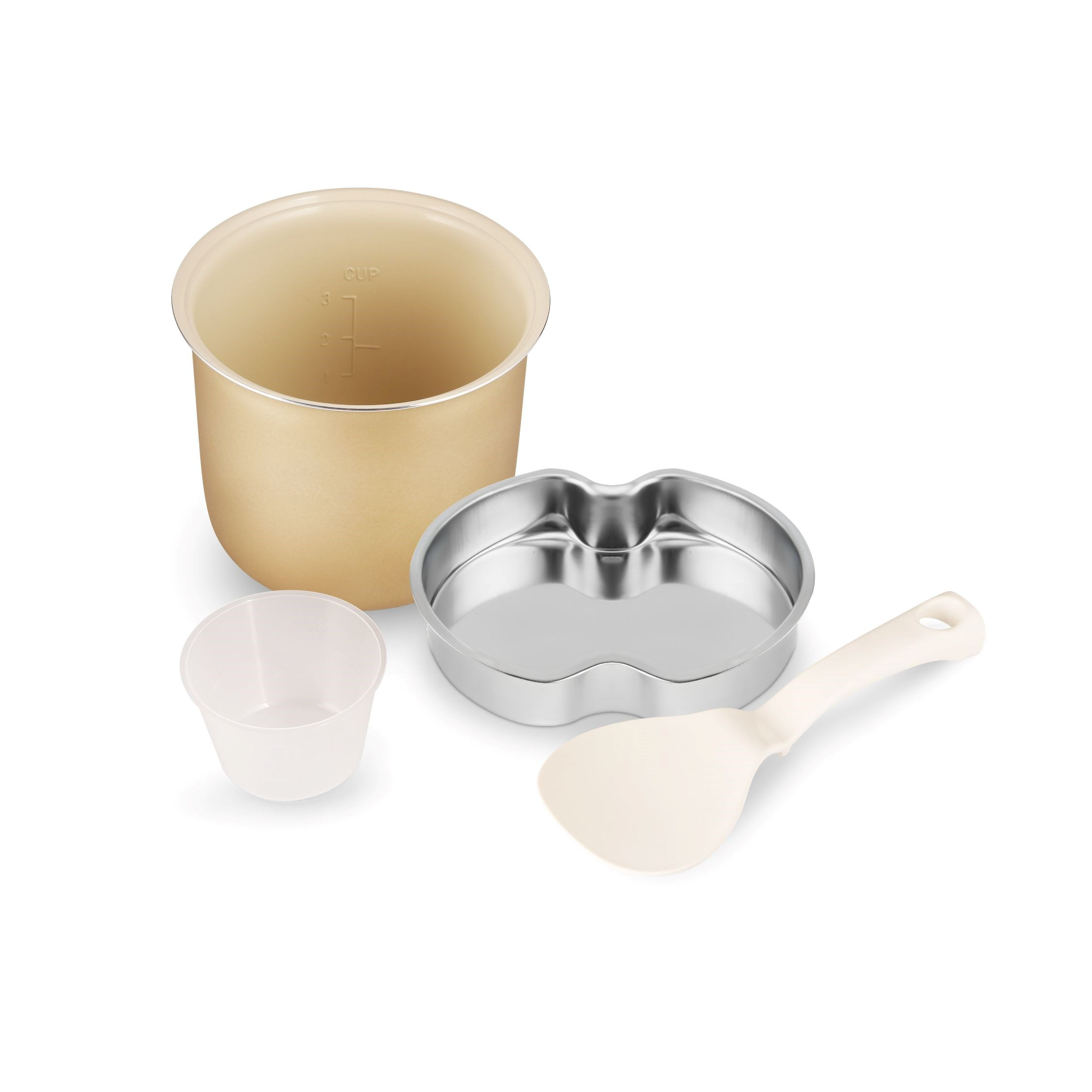 Ovládání multifunkčního rýžovaru zvládne úplně každý pomocí přehledného dotykového displeje, kde stiskem tlačítka aktivujete zvolenou funkci nebo si manuálně nastavíte hodnoty dle potřeby. V 1,5 l hrnci s nepřilnavým povrchem pohodlně připravíte jídlo pro celou rodinu či sešlost přátel. Stačí jej pak vyjmout a vložit do myčky, žádné složité drhnutí. Součástí balení je rovněž praktická odměrka a lžíce na rýži.