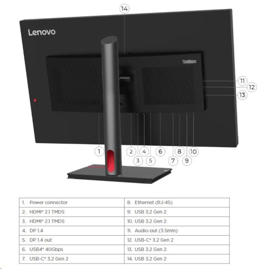 | Speciální funkce | Lenovo® ThinkColour (Lenovo Accessories and Display Manager) Support Lenovo ThinkColour supports Windows® 10 & 11, Mac OS, and Windows On Arm (functions vary across systems). Lenovo Accessories and Display Manager is formerly Lenovo Display Control Center. Factory Calibration: Avg. Delta E<1.5 Picture In Picture (PIP) / Picture By Picture (PBP) Support HDR10 Compliance DisplayHDR™ 1000 HLG KVM Switch Smart Sensor (Ambient Light Sensor, Human Detection Sensor) Smart Power The Smart Power function intelligently detects overall power consumption and dynamically manages the power delivery to each device |