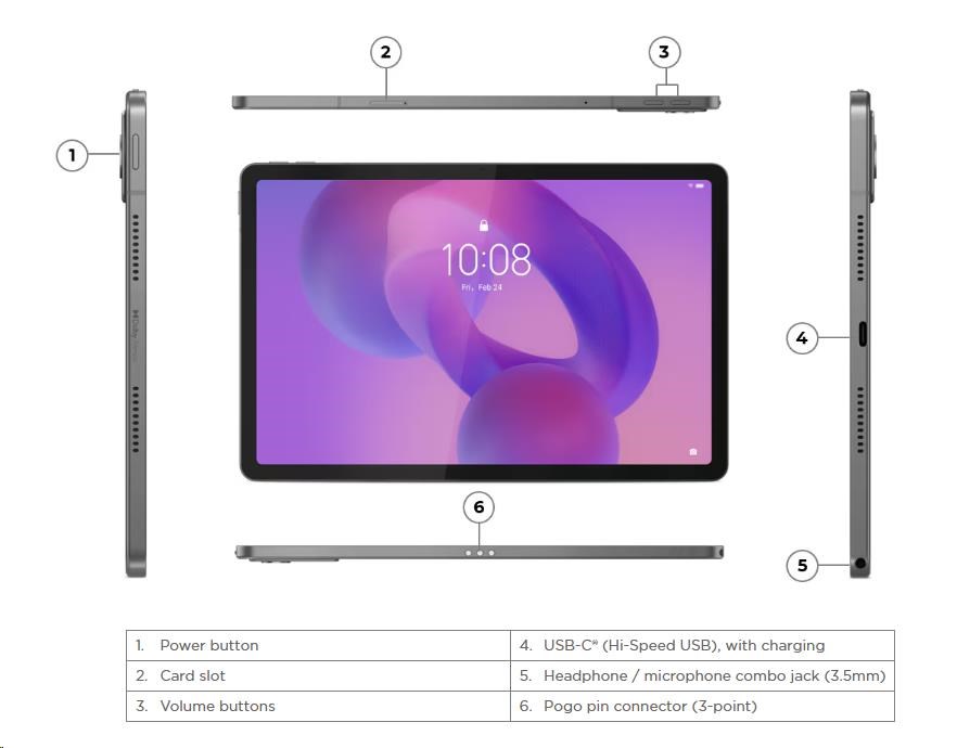 | Standartné porty | 1x USB-C® (Hi-Speed USB / USB 2.0), with charging 1x Headphone / microphone combo jack (3.5mm) 1x Card slot |