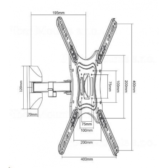 Technické údaje: nosnost 30kg podporuje VESA standardy 75x75 až 400x400 doporučená úhlopříčka televizoru 13-55" otáčení do stran +/- 35° náklon dole i nahoru +/- 20° nastavitelná vzdálenost od zdi 75-195mm úchytka na fixaci kabeláže ocelová konstrukce barevné provedení černé záruka 3 roky Držák Fiber Mounts DT758 podporuje VESA standardy: VESA 75x75 VESA 100x100 VESA 200x100 VESA 200x200 VESA 300x200 VESA 300x300 VESA 400x200 a 200x400 VESA 400x300 a 300x400 VESA 400x400 Tento držák je vhodný pro zavěšení všech typů a značek televizorů, které podporují kterýkoliv z výše uvedených VESA standardů a mají hmotnost do 30kg. Velikost - úhlopříčka televizoru není podstatná..