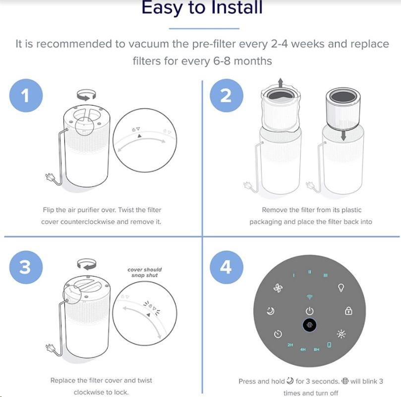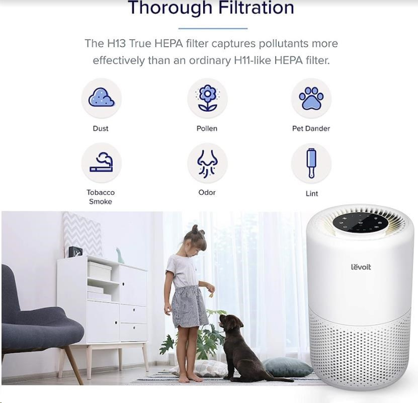 Vysoce kvalitní tří stupňový systém filtrace a HEPA H13 Filtrace vzduchu přebíhá ve 3 krocích. Prvním je nylonový vnější filtr, který zachycuje nejhrubší částice jako prach, vlákna, částky vlasů nebo chlupů.Druhou vrstvou je HEPA filtr H13. To odlišuje Levoit od konkurence, protože filtr HEPA H13 je mnohem kvalitnější ... více