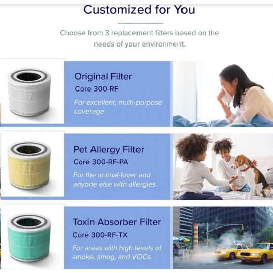 Poslední, vysoce efektivní karbonový filtr pak už jen odfiltruje kouř, pachy, výpary a jiné nejmenší částice. Celkově čistička Levoit CORE 300 zachytí až 99,97% všech nečistot, a to až do miniaturní velikosti 0,3 mikronů. Vám zůstane jenom čerstvý a čistý vzduch.