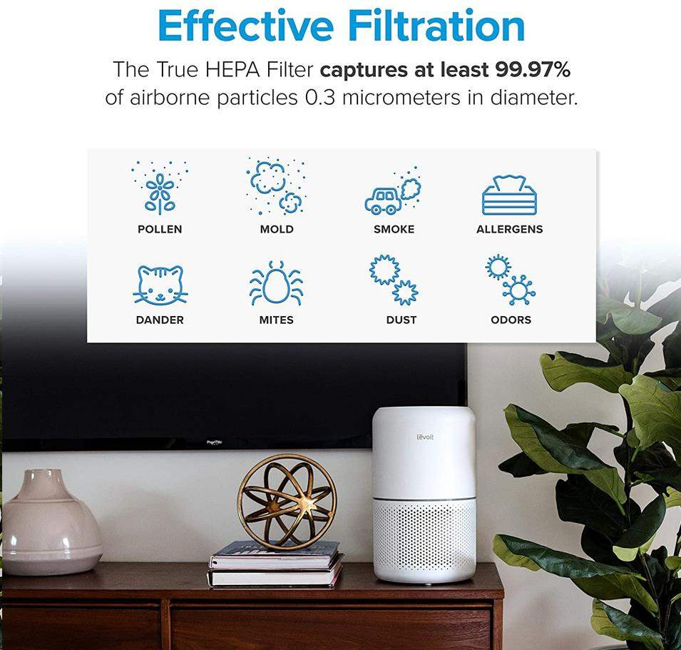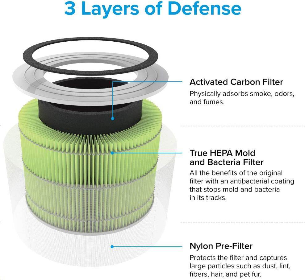 Druhou vrstvou je HEPA filtr H13. To odlišuje Levoit od konkurence, protože filtr HEPA H13 je mnohem kvalitnější a spolehlivější než běžně používané HEPA H11. Tu se odfiltrují jemné prachové částice, plíseň, bakterie, pyl, kouřové částice, roztoče a srst.