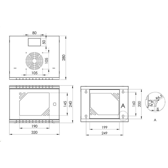 LEXI-Net 10" nástěnný rozvaděč Basic 4U 292x300, skleněné dveře, bez zad, svařovaný, šedý