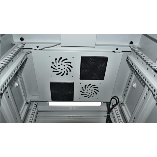 LEXI-Net 19" stojanový rozvaděč 24U 600x600 rozebiratelný, ventilační jednotka, termostat, kolečka, 600kg, sklo, šedý