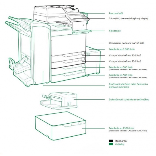 LEXMARK barevná tiskárna CX923dxe, A3, 55ppm,2048 MB, barevný LCD displej, DADF, USB 2.0, LAN