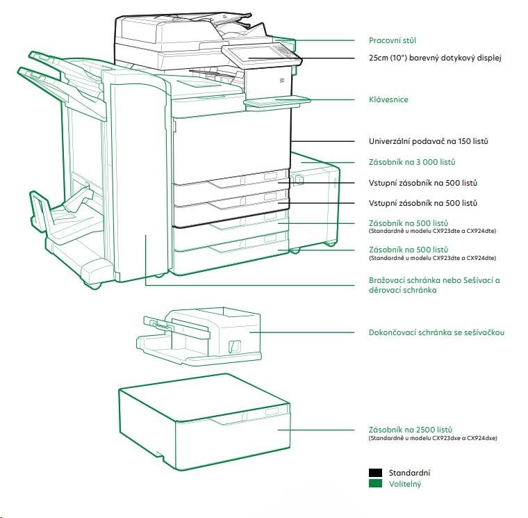 LEXMARK barevná tiskárna CX924dte, A3, 65ppm,2048 MB, barevný LCD displej, DADF, USB 2.0, LAN.