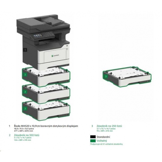 LEXMARK Multifunkční ČB tiskárna MX522adhe, A4, 44ppm, 2048MB, barevný LCD displej, duplex,DADF, USB 2.0, LAN,
