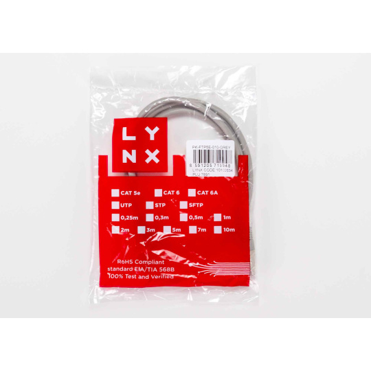 LYNX patch kabel Cat5E, FTP - 3m, šedý