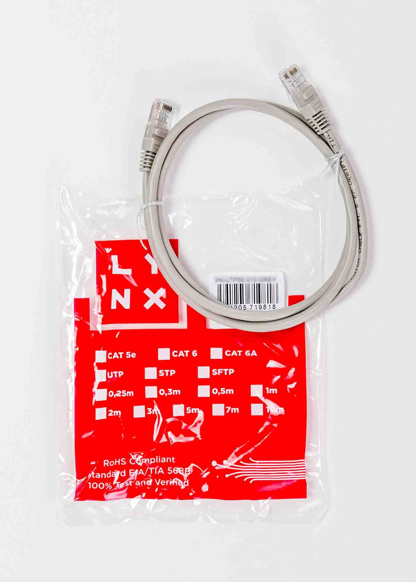 LYNX patch kabel Cat5E, UTP - 0,1m, šedý (prodej po 10 ks)