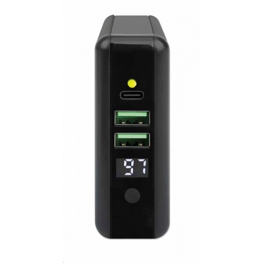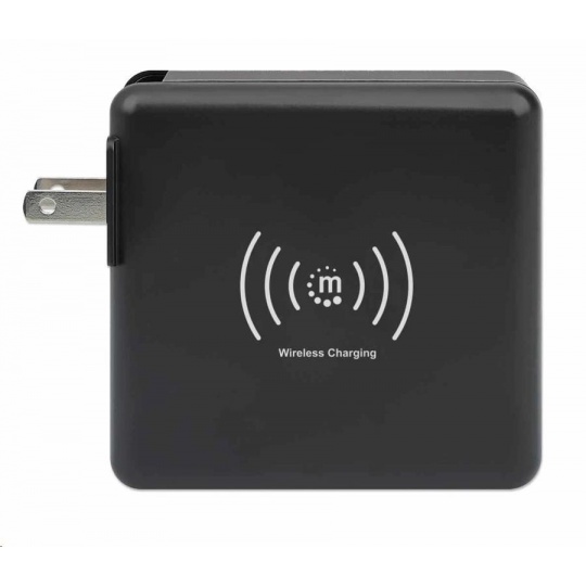 The Manhattan 4-in-1 Travel Wall Charger and Powerbank 8,000 mAh provides you with incredibly useful functions on one device. Use it as a USB wall charger to charge smartphones, tablets, eReaders, headphones and more from two USB-A and one USB-C port with per-port power up to 5 V / 2.4 A. You can also skip the wires altogether and charge compatible mobile devices on the 5 W wireless charging pad. For even more convenience, this all-rounder lets you charge on the go without plugging into a socket since it's also an 8,000 mAh powerbank. Its convenient digital number display lets you check the remaining battery at any time. Recharge the powerbank directly via AC on a power outlet or through its USB-C port. Finally, if you're an international traveler, you'll love its foldable US and swappable UK and EU plugs that let you charge devices in the many regions that offer these outlet types.