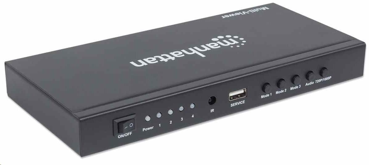 Manhattan HDMI přepínač, 1080p 4-Port HDMI Multiviewer Switch, černá