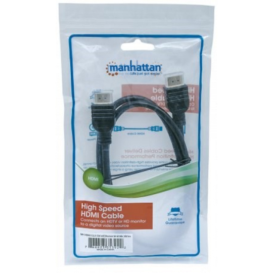 HDMI has become the standard digital connection, delivering the highest-quality audio and video signal over a single cable. Manhattan CL3 High Speed HDMI Cables are rated for in-wall installation and feature an abrasion-resistant design, a sturdy yet flexible PVC jacket and gold-plated contacts. Created to meet the evolving needs of the high-definition marketplace and fire protection standards, this cable provides the highest resolution possible at 4K x 2K, an audio return channel and a bandwidth of 18 Gbps at 600 MHz. These high-quality cables deliver high-definition video and multichannel, digital audio with increased performance characteristics and greater accuracy. With it's fully tested high specifications and in-wall fire rating, the Manhattan CL3 High Speed HDMI Cable will future-proof your Audio/Video project for years to come.