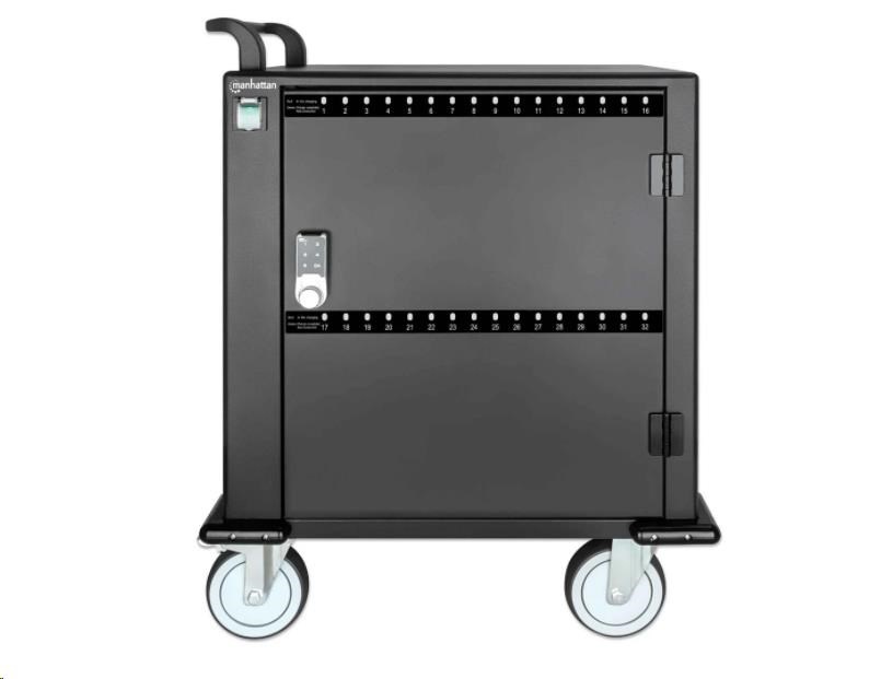 MANHATTAN nabíjecí vozík - 32 portů, 576 W, přepěťová ochrana, tichá ventilace, kovové pouzdro, černá