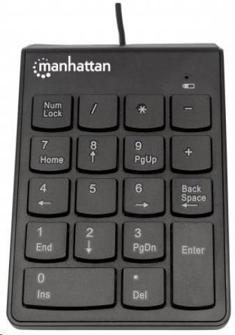 Manhattan Numeric Keypad enhances any notebook computing experiences especially when inputting important numeric data. The full-size 19-key layout and scissor-style (X-structure) key switch technology help reduce typing noise, improve response and provide low-profile keystrokes for fast and accurate data entry. A handy backspace key allows swift corrections. The asynchronous number lock function keeps its number-lock mode independent of the computer's keyboard. Users can simultaneously input letters from the computer's keyboard and input numeric data from the keypad. Its USB connection, plug-and-play installation and ultra slim, lightweight construction make it easy to pack and travel.