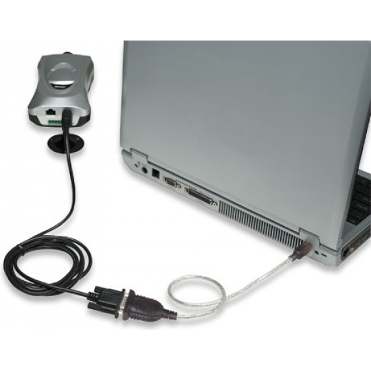 Quickly converts a USB port to a Serial/RS232/COM/DB9 port