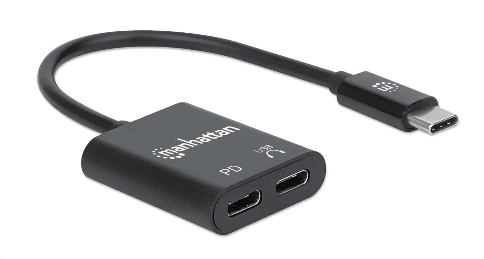 Want to listen to your USB-C headset and charging the device it connects to simultaneously? Add one USB-C audio port and get plenty of power for all your attached devices with the Manhattan USB-C Audio Adapter. Simply connect it to your computer's USB-C port, connect your computer's charging cable to the Power Delivery port on the adapter, and plug in your headphones. The adapter's Power Delivery technology charges your computer and all the devices it connects to so you can listen to music, favorite podcast or media program while you get work done. The jack also supports audio input if your headphone cable has a built-in mic so you can be heard and understood better in your online communications. Improve your productivity and get the audio connection you need with this USB-C audio adapter.