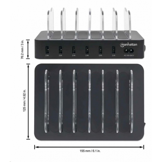 MANHATTAN USB nabíjecí stanice, 6-Port USB Charging Station, USB-A, černá