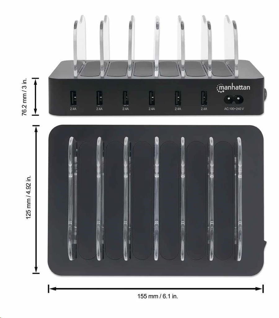 MANHATTAN USB nabíjecí stanice, 6-Port USB Charging Station, USB-A, černá