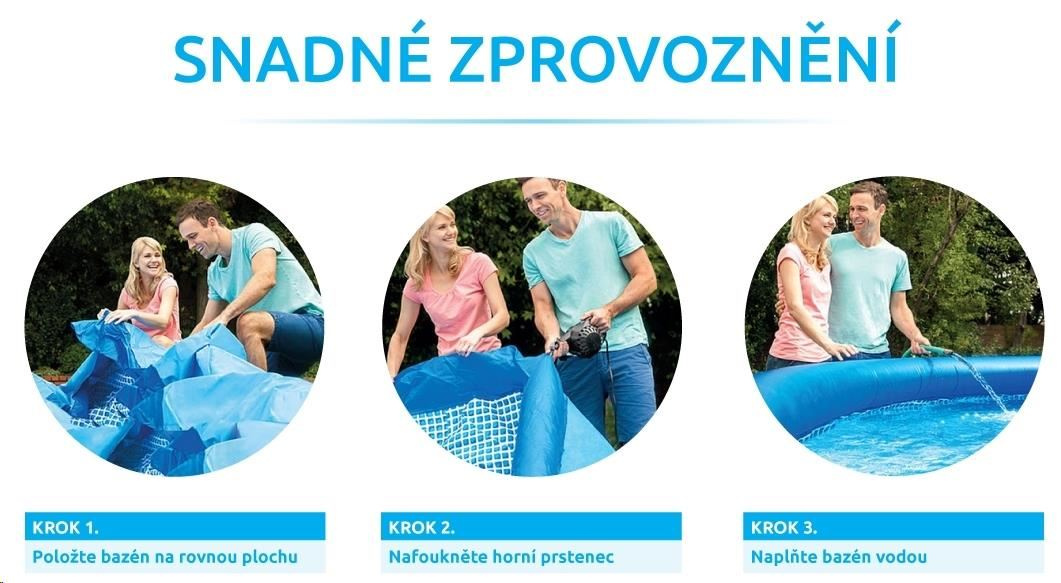 Bazén Tampa se řadí mezi neprodávanější a nejoblíbenější bazény v České republice. Koupání ve vlastním bazénu si může dopřát opravdu každý. Předností bazénu Tampa je nízká cena, snadná údržba i rychlé zprovoznění. Stačí jen připravit místo na bazén, rozvinout bazénovou podložku, bazén rozbalit, nafouknout horní límec a začít napouštět vodu. Stoupající voda sama bazén postaví. Od vybalení bazénu můžete do 10 minut napouštět vodu. Bazén je nutné po skončení bazénové sezony vyčistit, vypustit a uklidit na suché, nemrznoucí místo. Správnou údržbou prodloužíte životnost bazénu. Doporučujeme bazén po koupání zakrývat krycí plachtou. Pro snadné nafouknutí doporučujeme zakoupit ruční či elektrickou pumpu. Bazénová folie: Stěny a dno jsou vyrobeny z pružného a pevného 3vrstvého POLYSTRENGHT PVC materiálu. Barva imituje vzhled ratanu. Připojení filtrace: K bazénu můžete připojit libovolnou kartušovou či pískovou filtraci z naší nabídky. Pro napojení filtrace jsou připraveny průchody stěnou bazénu o průměru 32 mm (5/4"). Pro připojení pískové či kartušové filtrace je nutné dokoupit: 6 ks bazénových hadic 2 ks průchodu stěnou bazénu 1 ks instalační sady Součásti balení bazénu Tampa: bazén Tampa návod záslepky průchodů stěn bazénu Tolerance rozměrů bazénu: Uvedené rozměry bazénu jsou pouze orientační a ovlivnit je může rovnost podkladu, objem napuštěné vody nebo nafouknutí límce. Povolená výrobní odchylka je 5 %. Upozornění: Fotografie produktu jsou ilustrační Zapuštění bazénu Tampa: Bazén Tampa není určen k celkovému ani částečnému zapuštění do země. Jedná se o nadzemní bazén. Uskladnění bazénu Tampa: Bazén Tampa není určen k celoročnímu provozu a proto by měl být na konci koupací sezóny zazimován. Bazén je potřeba vypustit, umýt od nečistot, osušit a uložit na suché místo, kde nemrzne. Je vhodné ho v průběhu zimy občas přeskládat, aby ve folii nevznikaly přehyby. Prodloužíte tak jeho životnost. Rozměry a typ bazénu Barva: vzhled Ratan Průměr bazénu: 3,66 m Průměr hladiny vody: 307 cm Výška bazénu: 0,91 m Celkový objem vody v bazénu: 6,6 m3 Modelová řada: Bazény Tampa Konstrukce: Samonosný bazén Bazén: Bez filtrace Tvar bazénu: Kruh Vybavení bazénu Krycí plachta součástí balení: Ne Podložka součástí balení: Ne Schůdky součástí balení: Ne Skimmer součástí balení: Ne Rozměry a hmotnost balení 1. balík: 50 x 37 x 26 cm, 14,3 kg Hmotnost: 14.29 kg.