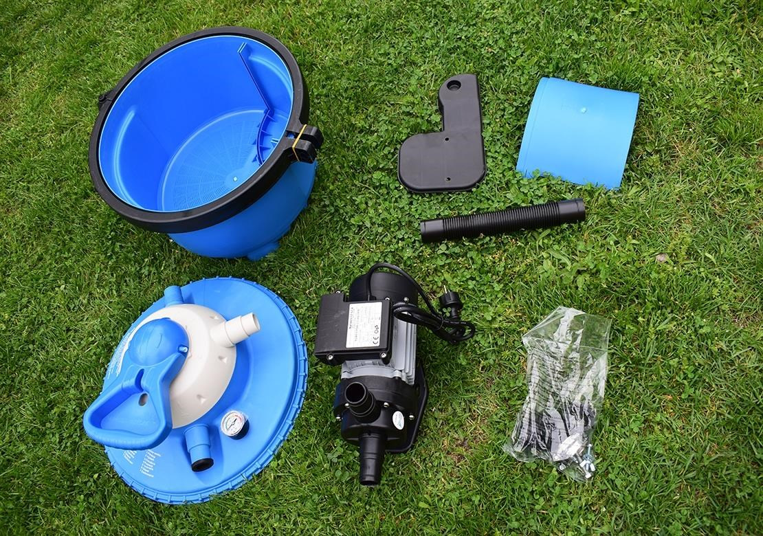 Filtrace je vybavena odvodňovacím ventilem, tlakoměrem, vestavěnými komponenty filtrační nádoby včetně snadno ovladatelného 6-ti cestného ventilu (který je zabudován do víka filtrační nádoby), motorem čerpadla o příkonu 200 W, plastovou základnou pro montáž v místě instalace. Systém je vyroben z vysoce kvalitních materiálů při přísném dodržování technických norem a prochází výstupní kontrolou.