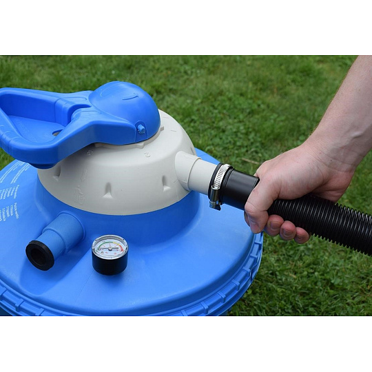- Standardně je písková filtrace dodáváne bez filtračního písku a hadic. Pokud tyto produkty nemáte, doporučujeme je koupit současně s pískovou filtrací.