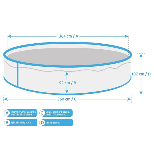 Návod na sestavení bazénu obsahuje i příslušenství, které v balení není a je nutné ho dokoupit zvlášť.