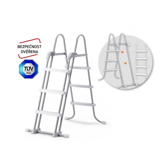 Schůdky mají odnímatelná stupátka - při jejich odnětí zamezíte nekontrolovatelnému vstupu dětí do bazénu. Maximální nosnost 136 kg.
