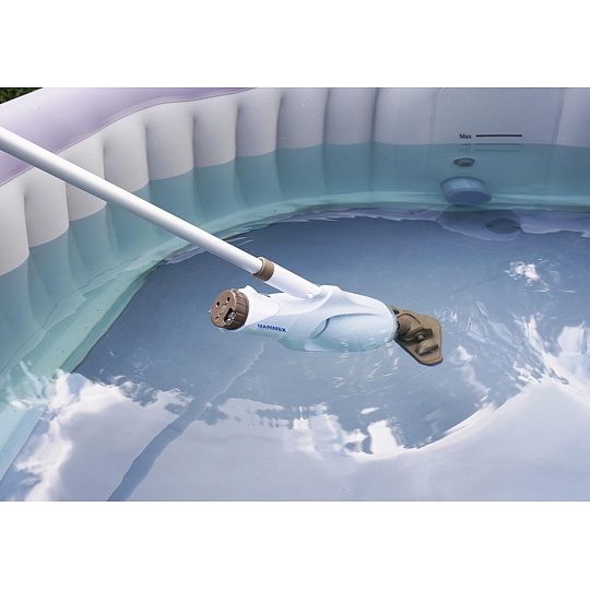 Vysavač pro vířivky a bazény Marimex SpaVac Columbia set je vhodný pro vířivky. Lze ho také využít na bazény do průměru 4,57 m. Na vysavač lze připojit 170 cm dlouhou tyč, která je součástí balení. Případně je možné připojit i jiné teleskopické tyče. Vysavač jednoduše vyčistí dno, či stěny. Díky přídavnému setu kartáče a síťky je vysavač skutečným expertem na vířivky. Set je vhodný jak pro ruční čištění, tak pro čištění při napojení na tyč.