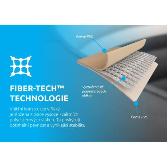 - Konstrukce vany: 42 FIBER-TECH BEAMS (silná polyesterová vlákna)