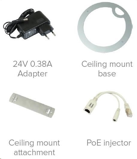 Balení obsahuje: RBcAP2nD, napájecí adaptér, PoE injektor, montážní sada