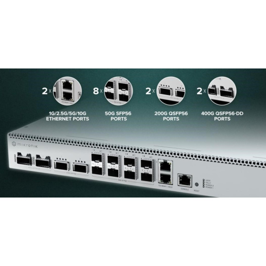 MikroTik CRS812-8DS-2DQ-2DDQ-RM 2x 400G QSFP-DD, 2x 200G QSFP56, 8x 50G SFP56, 2x 10GE Cloud Router Switch