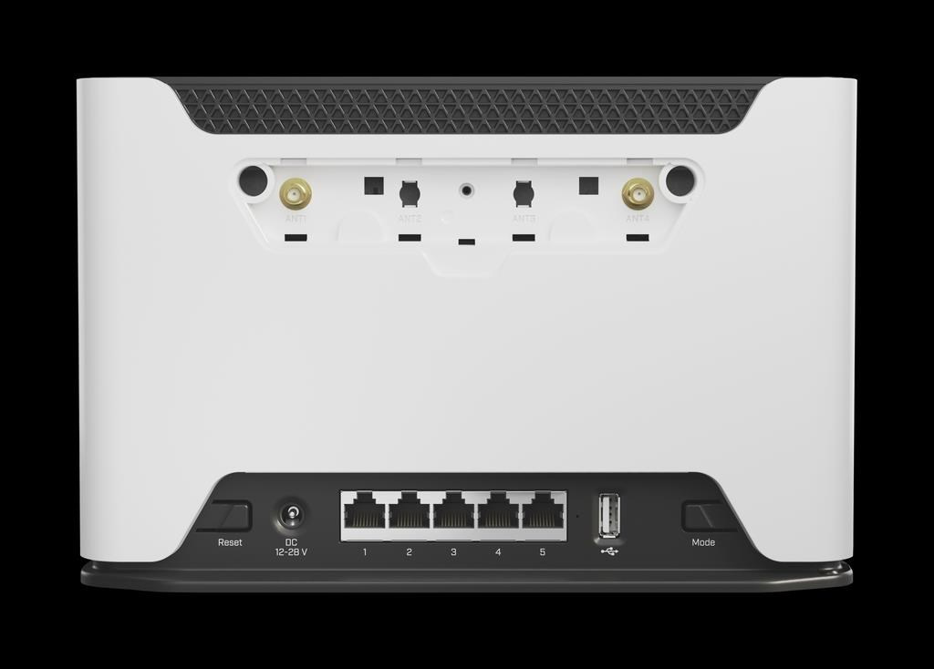 Product code D53G-5HacD2HnD-TC&FG621-EA CPU Quad-Core IPQ-4019 716 MHz CPU architecture ARM 32bit Size of RAM 256 MB RAM type DDR3L Storage 16 MB, Flash Number of 1G Ethernet ports 5 USB port 1 (2.0 type A) Switch chip model IPQ-4019 Wireless interface model IPQ-4019 (2.4 GHz), IPQ-4019 (5 GHz) Wireless 2.4 GHz 802.11b/g/n dual-chain, 5 GHz 802.11a/n/ac dual-chain Antenna gain 2.4 GHz - 2 dBi, 5 GHz - 4 dBi LTE category 6 (300Mbit/s Downlink, 50Mbit/s Uplink) LTE modem FG621-EA TAC 86335904 MIMO DL 2x2 LTE FDD bands 1 (2100MHz) / 3 (1800MHz) / 5 (850MHz) / 7 (2600MHz) / 8 (900 MHz) / 20 (800MHz) / 28 (700MHz) Suitable for the EMEA/APAC/Australia regions. LTE TDD bands 38 (2600MHz) / 40 (2300MHz) / 41 (2500MHz) 3G Category R8 (42.2Mbps Downlink, 11.2Mbps Uplink) 3G Bands 1 (2100MHz) / 3 (1800MHz) / 5 (850MHz) / 8 (900MHz) Dimensions 240 x 156 x 44 mm Operating system RouterOS v7, License level 4 Operating temperature -40°C to +70°C Number of DC inputs 1 DC jack input Voltage 12-28 V Power adapter nominal voltage 24 V Power adapter nominal current 1.2 A Max power consumption without attachments 15 W Max power consumption 21 W.